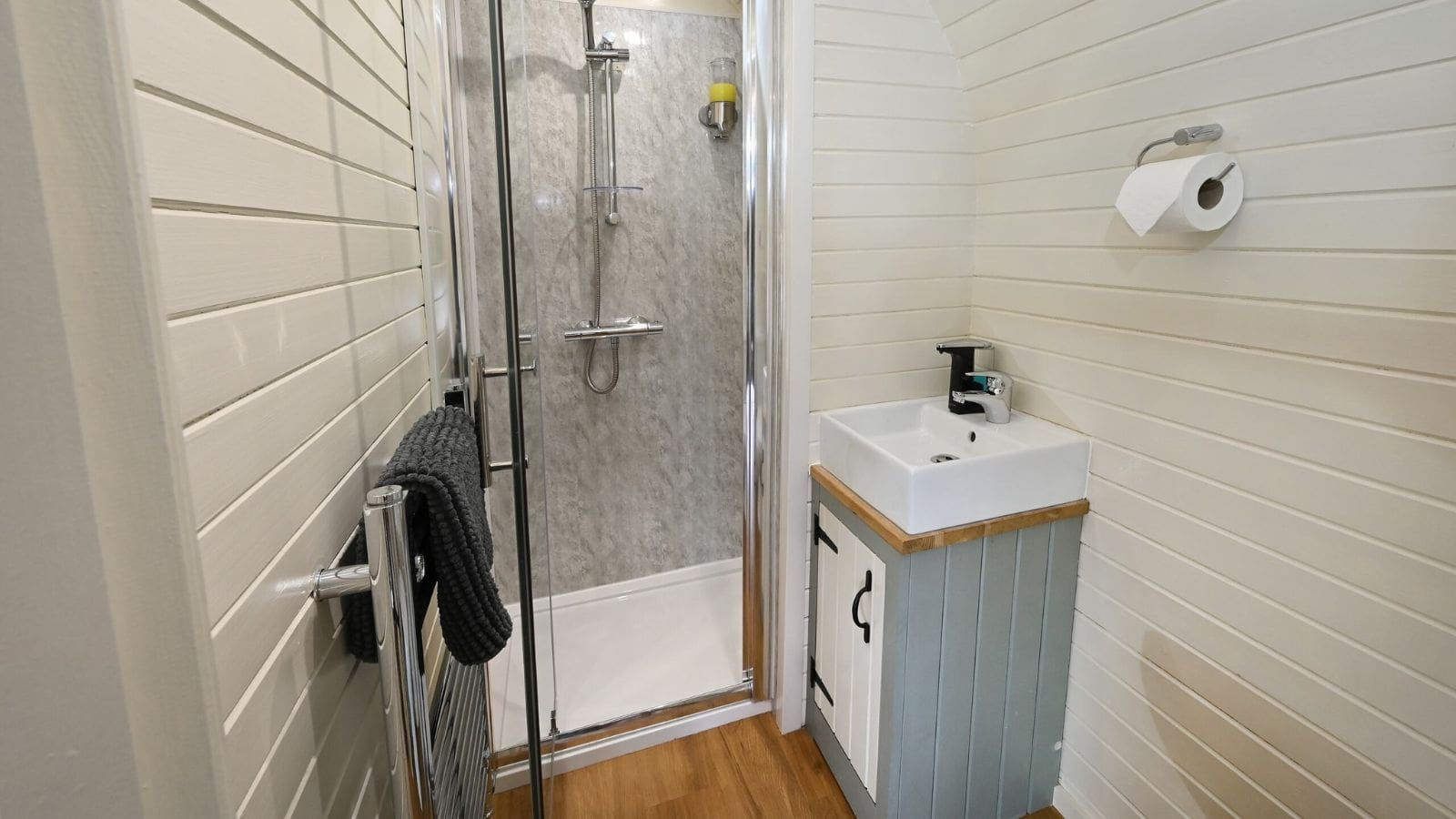 - Toilet and shower room with shaver point and heated towel rail