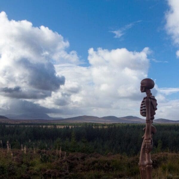 The trail weaves through peaceful Scots pine and birch woodland, where red squirrels dart across the path and birds flit through the trees. Along the way, you’ll cross charming wooden bridges over clear streams and might stumble across the unexpected, like the striking “Spirit of the Glen” statue tucked away among the trees.
