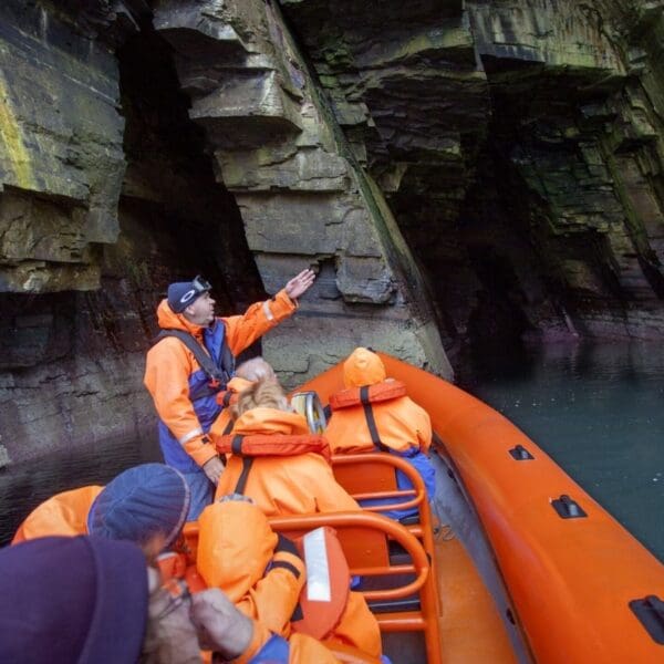 Join the Geo Explorer for an exciting tour of the East Caithness coastline. Exploring caves, Whaligoe Haven, castles, geos, natural arches and much more. Close up views of seasonal nesting birds and marine wildlife. Informative commentary throughout.